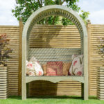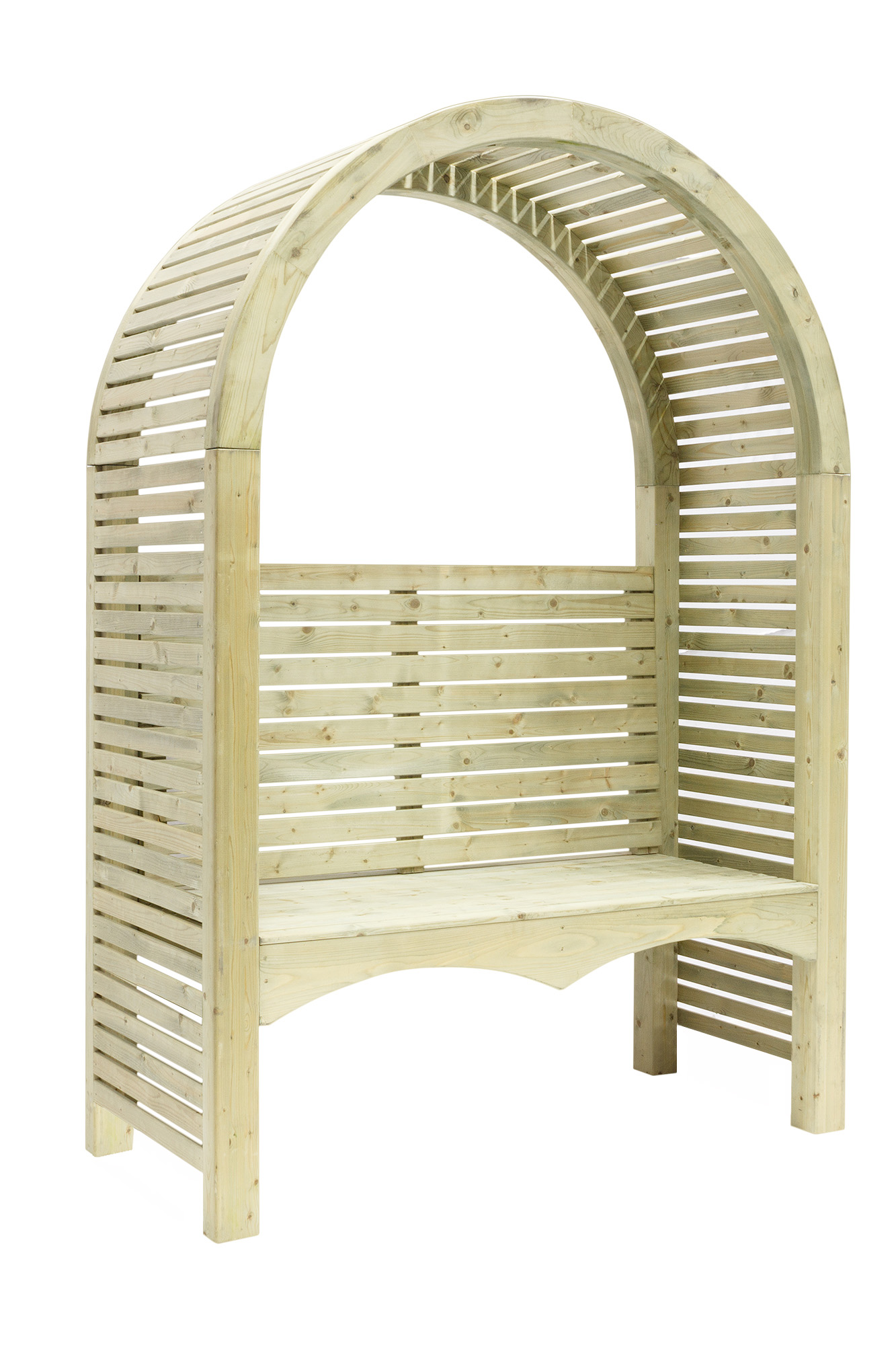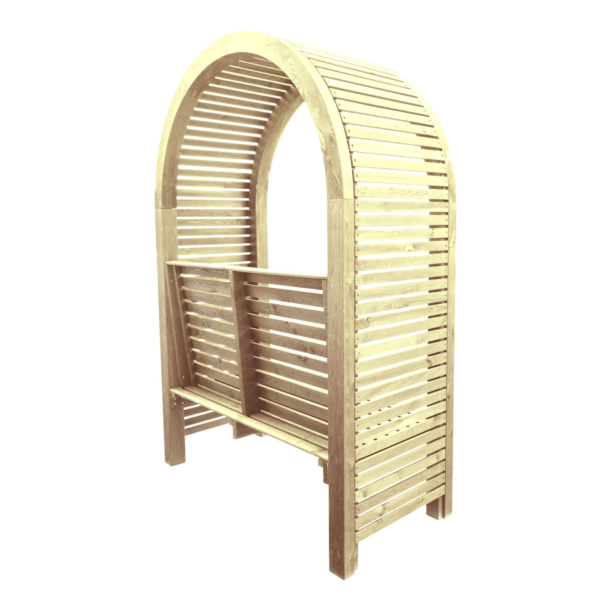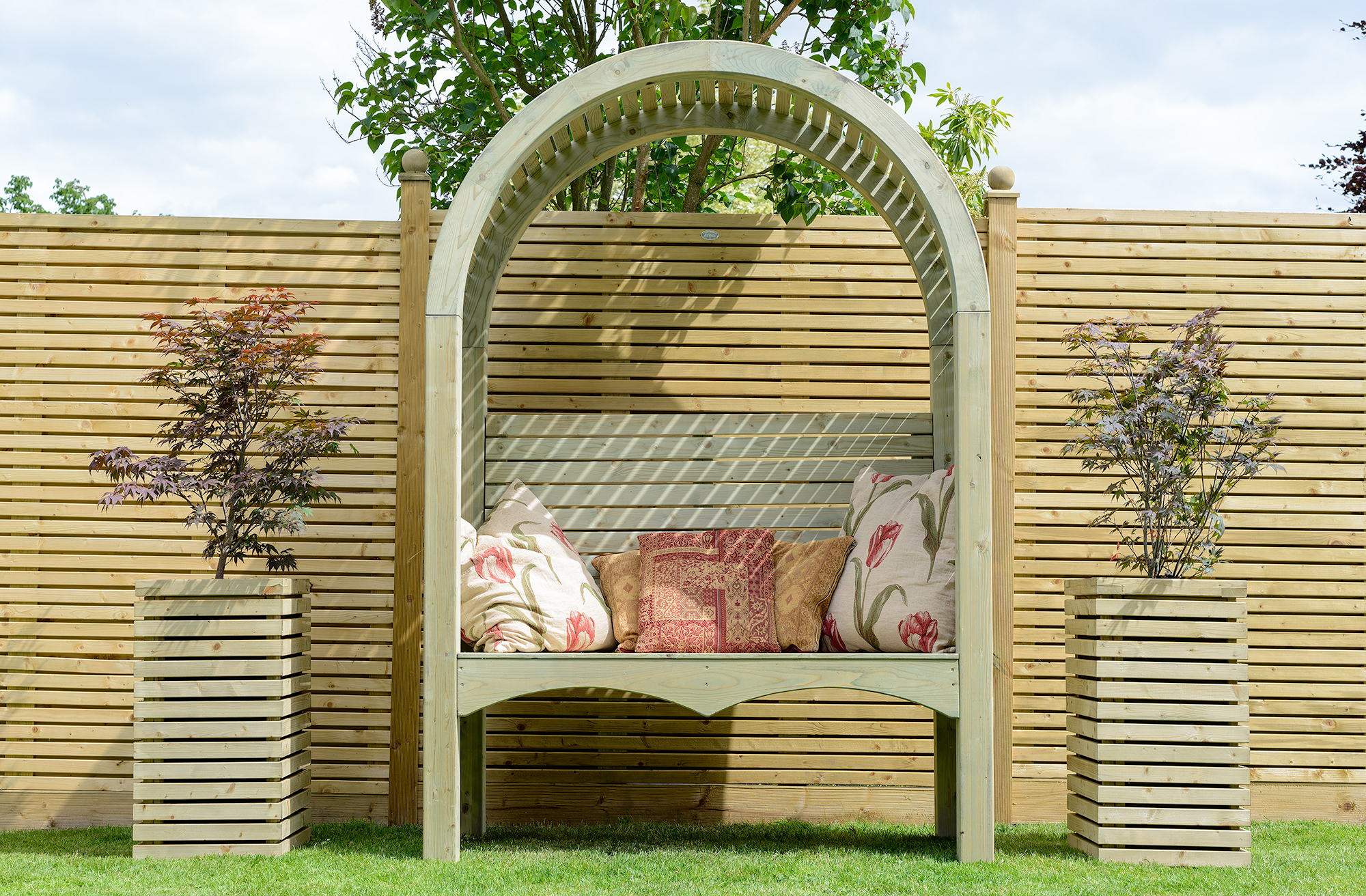 This Contemporary Arbour has real presence with modern straight lines, and a classic curved roof using quality finger joints. Dress the large seat with cushions to create a perfect space for relaxing and putting your feet up. The continuous slats are ideal for growing climbing plants making this arbour an attractive feature for your contemporary garden. The arbour is pressure-treated to provide protection from wood rot and fungal decay.