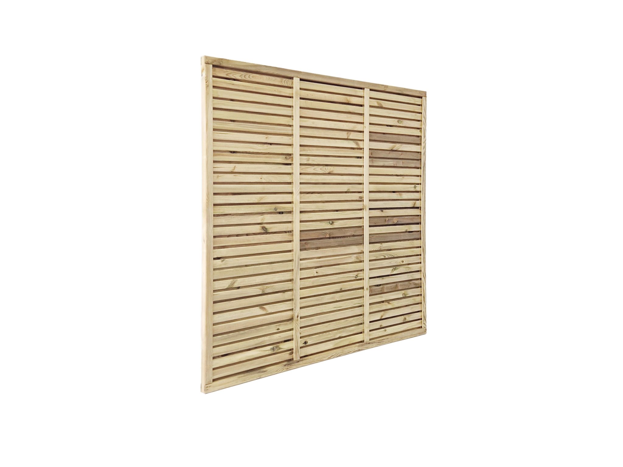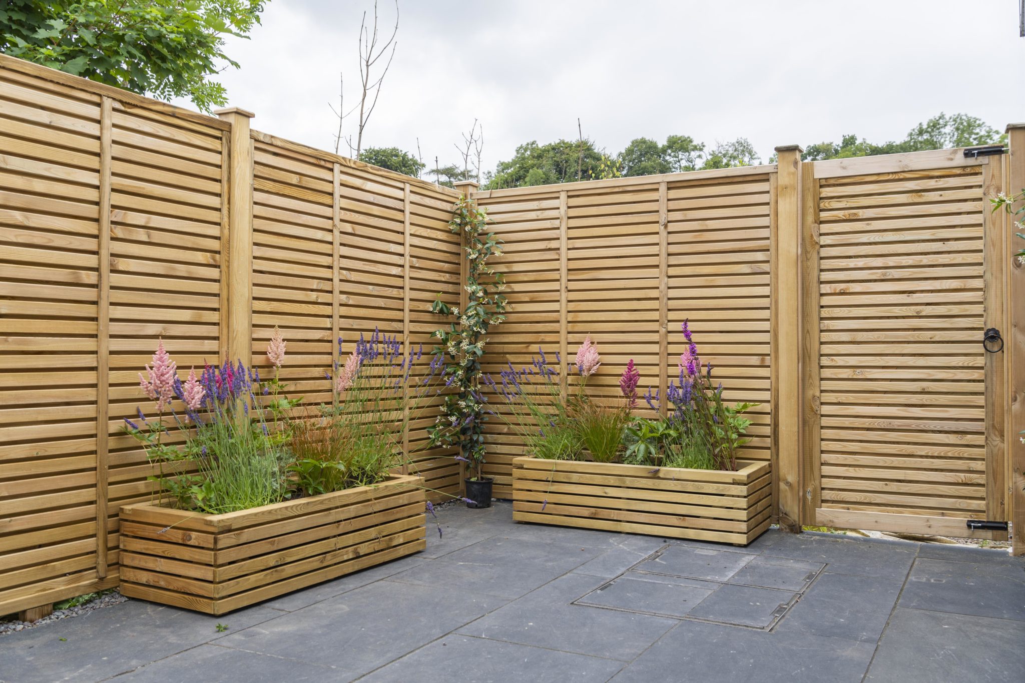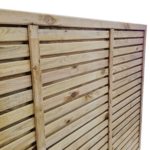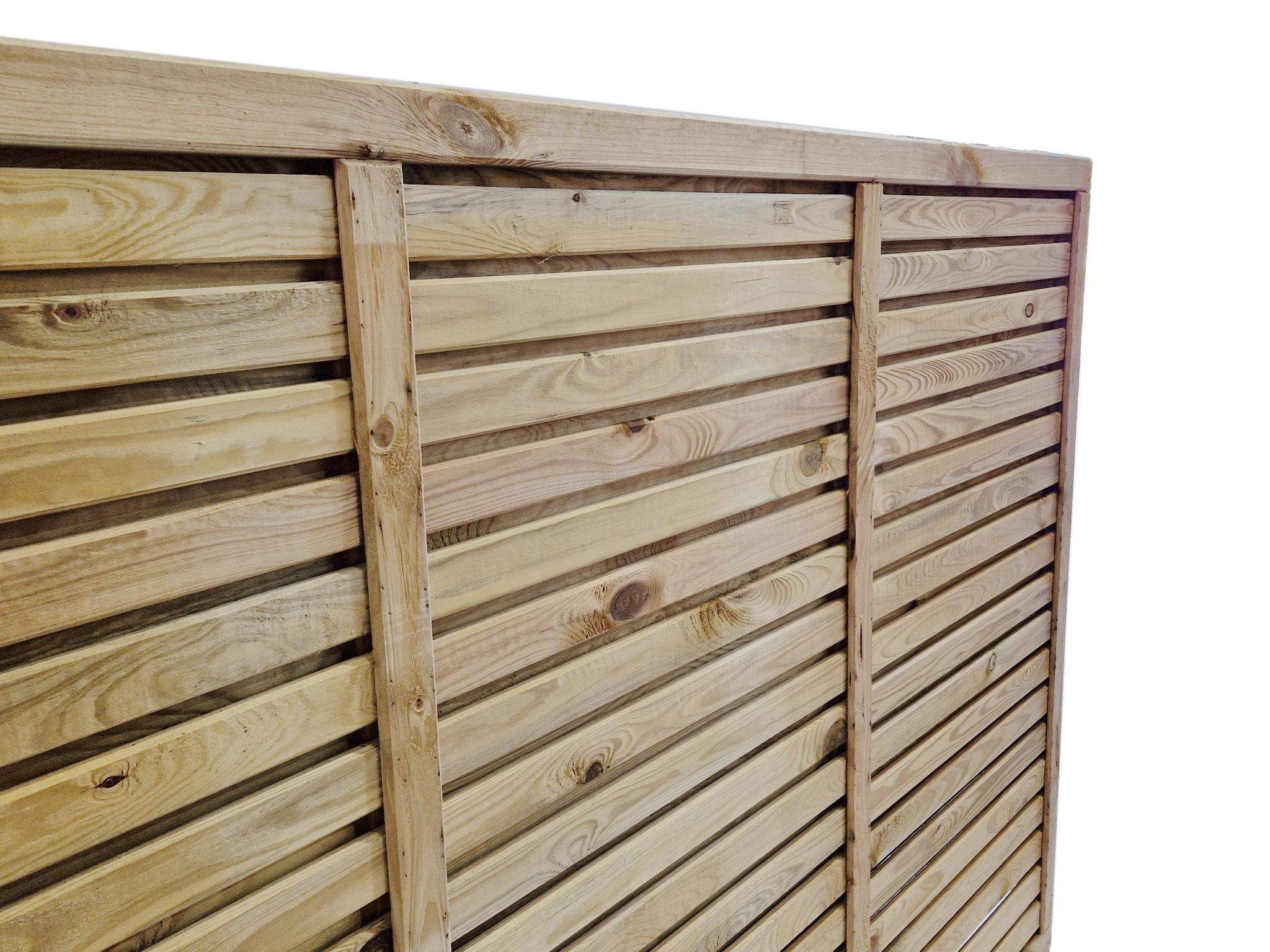 Part of our Contemporary Collection, the Contemporary Vogue Panel is constructed with a fully Mortise and Tenon jointed frame and slats on both sides for ultimate privacy making this our most substantial and durable panel yet. Slats are planed and rounded for a premium look and feel. This panel is pressure-treated for protection against wood rot. Use with the Contemporary Arch, Arbour and Planter collection for a co-ordinated look. Matching gate available.