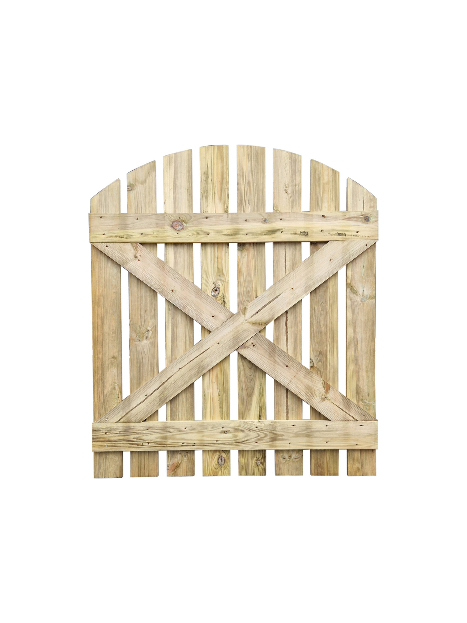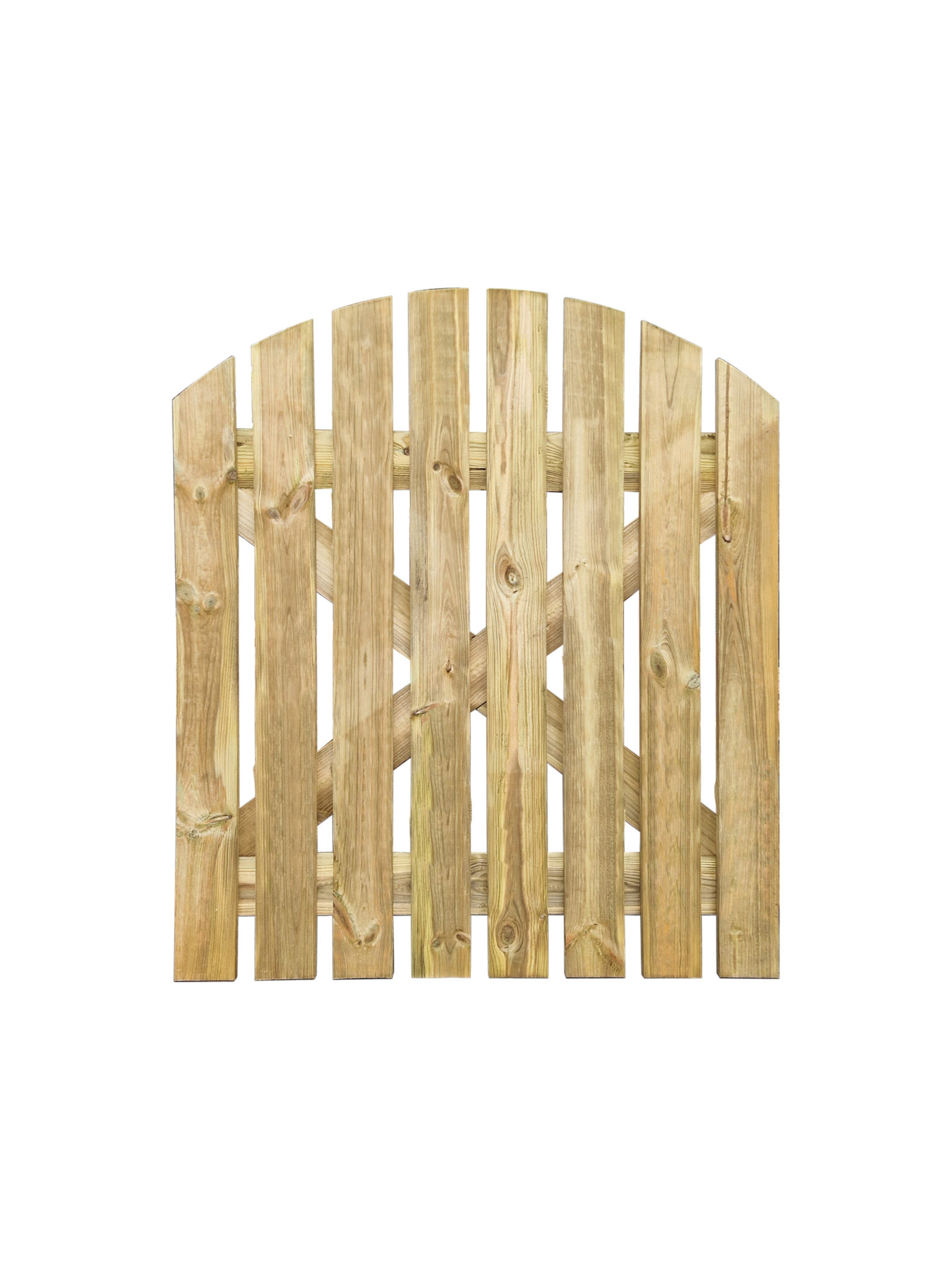A domed top gate with a simplistic yet rustic feel, ideal to use along a pathway or entrance. The planed timber is pressure-treated to ensure longevity in use.