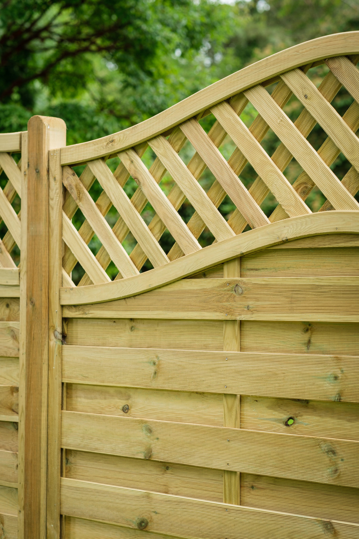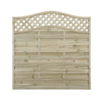 The Elite Meloir Fence Panel offers a decorative design to suit many styles of garden settings. The horizontal timber slats and wave top lattice are planed, rounded and grooved and fixed into a strong rebated frame. This panel is also pressure-treated providing protection and appearance retention with matching trellis and gates available.